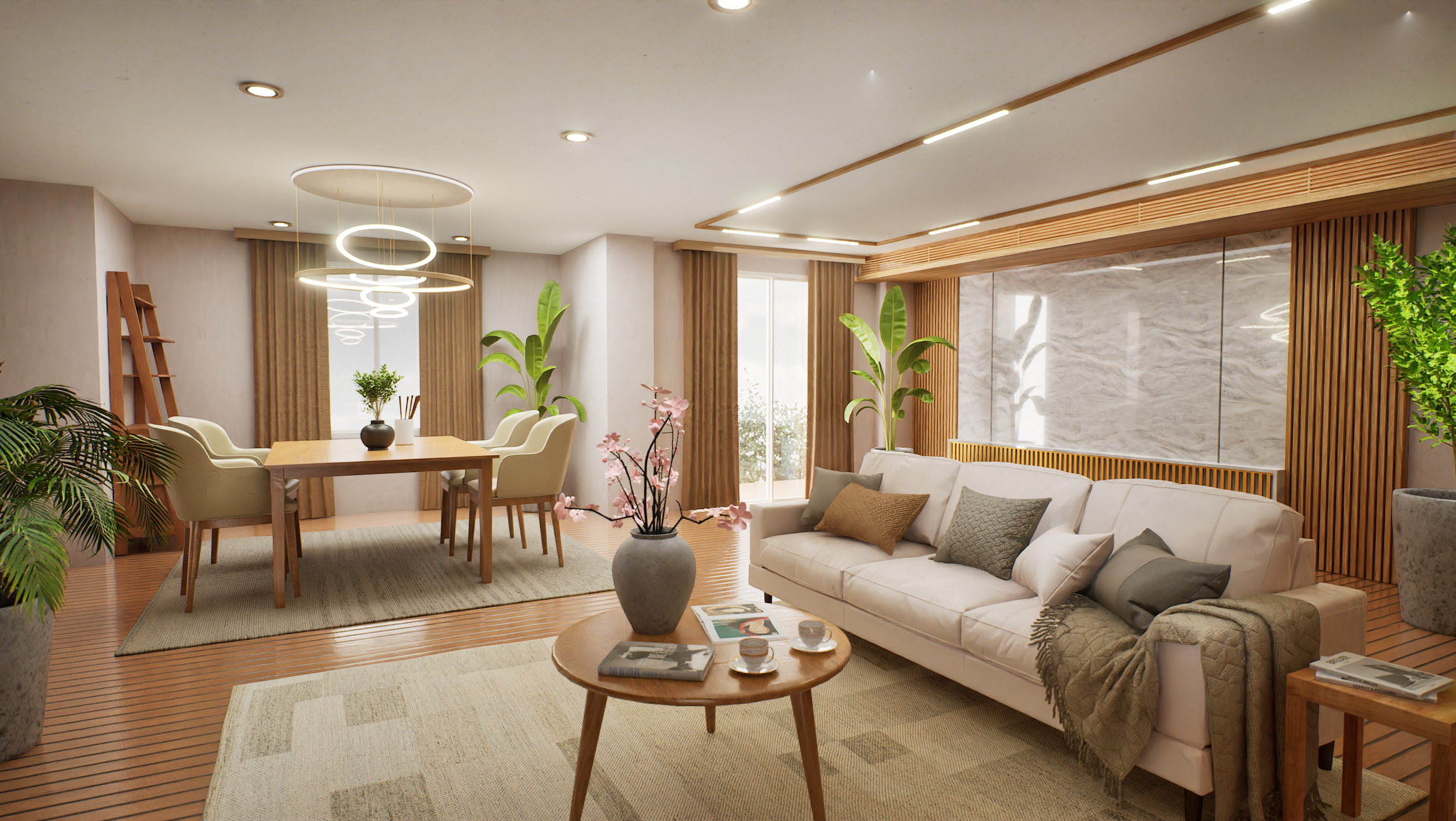 This project features a modern and spacious living room. I first modeled it based on a blueprint, using 3D Studio Max, and then lit and rendered it using Unreal Engine.
